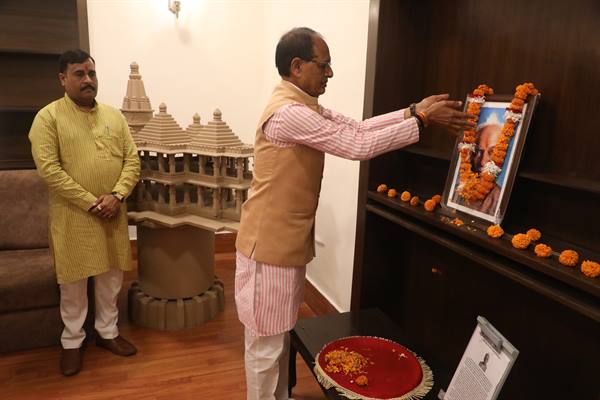 मुख्यमंत्री श्री शिवराज सिंह चौहान ने गायत्री परिवार के संस्थापक आध्यात्मिक लेखक और स्वतंत्रता संग्राम सेनानी पं. श्रीराम शर्मा आचार्य की 111वीं जयंती पर मुख्यमंत्री निवास सभाकक्ष में उनके चित्र पर माल्यार्पण कर नमन किया