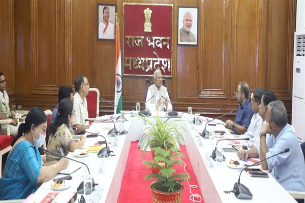 राज्यपाल श्री पटेल राजभवन में में टी.बी. उन्मूलन कार्यक्रम के तहत सामुदायिक सहभागिता नि-क्षय 2.0 की गतिविधियों पर स्वास्थ्य विभाग के अधिकारियों के साथ चर्चा कर रहे थे।