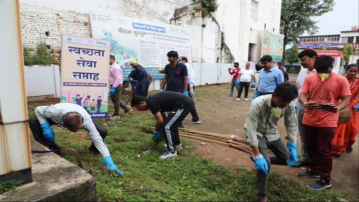 शासन के निर्देशानुसार जिले में 17 सितंबर से 02 अक्टूबर तक सेवा पखवाड़ा मनाया जा रहा है। इसके अंतर्गत निर्धारित दिवसों पर विभिन्न गतिविधियां आयोजित की जा रही हैं। इसी परिप्रेक्ष्य में सेवा पखवाड़ा के अंतर्गत आज कलेक्टर श्री सौरभ कुमार सुमन ने प्रशासनिक और स्वास्थ्य विभाग के अधिकारियों के साथ जिला चिकित्सालय छिंदवाड़ा के परिसर में स्वयं साफ-सफाई का कार्य किया और स्वच्छता ही सेवा का संदेश दिया। इस दौरान उन्होंने जिला चिकित्सालय के विभिन्न वार्डों का निरीक्षण भी किया और इसी तरह प्रतिदिन जिला चिकित्सालय परिसर में स्वच्छता का परिवेश बनाये रखने के निर्देश दिए। इस अवसर पर एडीएम श्री ओ.पी.सनोडिया, एसडीएम श्री अतुल सिंह, नगर निगम आयुक्त श्री हिमांशु सिंह, मेडिकल कॉलेज के डीन डॉ.गिरीश बी.रामटेके, मुख्य चिकित्सा एवं स्वास्थ्य अधिकारी डॉ.जी.सी.चौरसिया, सिविल सर्जन डॉ.शिखर सुराना, उप संचालक कृषि श्री जितेंद्र कुमार सिंह व नगरपालिक निगम सहायक आयुक्त श्री आर.एस.बाथम सहित जिला प्रशासन व स्वास्थ्य विभाग के अन्य अधिकारी और कर्मचारी मौजूद थे।