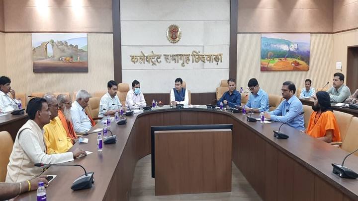 प्रधानमंत्री श्री नरेन्द्र मोदी द्वारा आगामी 11 अक्टूबर को उज्जैन में महाकाल मंदिर के विस्तार से संबंधित कार्यों का लोकार्पण किया जा रहा है। इस अवसर पर जिले के ग्रामीण और नगरीय क्षेत्रों के मंदिरों में कार्यक्रम आयोजित किये जाने के संबंध में कलेक्टर सौरभ कुमार सुमन की अध्यक्षता में आज कलेक्टर कार्यालय के सभाकक्ष में बैठक संपन्न हुई । बैठक में मुख्य कार्यपालन अधिकारी जिला पंचायत हरेन्द्र नारायण, अतिरिक्त कलेक्टर ओ.पी.सनोडिया, एसडीएम अतुल सिंह, संयुक्त कलेक्टर अजीत तिर्की, आयुक्त नगर पालिक निगम राहुल सिंह, मंदिर प्रबंधन के धर्मगुरू व पुजारी एंव अन्य सामाजिक जनप्रतिनिधि सभाकक्ष में उपस्थित थे, जबकि जिले के सभी राजस्व अनुविभागीय अधिकारी और तहसीलदार व्ही.सी. के माध्यम से बैठक में सम्मिलित हुये ।