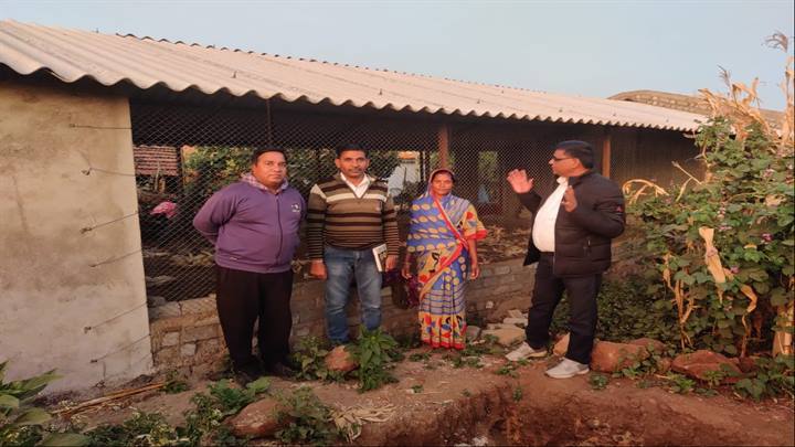 कलेक्टर श्रीमती शीतला पटले और मुख्य कार्यपालन अधिकारी जिला पंचायत श्री हरेंद्र नारायण के मार्गदर्शन में जिले में पोल्ट्री शेडों का निर्माण कार्य जारी है । इसी परिप्रेक्ष्य में उप संचालक पशुपालन डॉ.एच.जी.एस.पक्षवार द्वारा आज मनरेगा के अंतर्गत स्माल ओल्डर पोल्ट्री ब्राइलर तामिया मॉडल आजीविका मिशन के अंतर्गत ग्राम पंचायत धूसावानी के ग्राम राजढाना के स्व-सहायता समूह की महिलाओं में हितग्राही श्रीमती केशम बाई के मुर्गी शेड का निरीक्षण किया गया । उन्होंने मुर्गी शेडों का निर्माण कार्य शीघ्र पूर्ण करने के निर्देश दिये । निरीक्षण के दौरान डॉ.पंकज कुर्मी, संचालक पशुपालन विभाग भोपाल के निज सचिव श्री दिनेश सहारे और विकासखंड प्रबंधक श्री देवेंद्र बर्डे उपस्थित थे ।