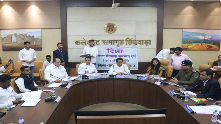 जिले के सांसद श्री नकुलनाथ की अध्यक्षता में आज कलेक्टर कार्यालय के सभाकक्ष में जिला विकास समन्वय एवं निगरानी समिति (दिशा) की बैठक संपन्न हुई । बैठक में पूर्व मुख्यमंत्री एवं विधायक छिंदवाड़ा श्री कमल नाथ, विधायकगण सर्वश्री कमलेश शाह, सोहनलाल वाल्मिक, सुजीत कुमार चौधरी, सुनील उईके, विजय चौरे व नीलेश उईके, जिला पंचायत अध्यक्ष श्री संजय पुन्हार, नगरपालिक निगम महापौर श्री विक्रम अहके, पूर्व मंत्री श्री दीपक सक्सेना, जनपद पंचायतों और नगरीय निकायों के अध्यक्ष, कलेक्टर श्रीमती शीतला पटले, पुलिस अधीक्षक श्री विनायक वर्मा, मुख्य कार्यपालन अधिकारी जिला पंचायत श्री हरेन्द्र नारायण, एसडीएम श्री अतुल सिंह, संयुक्त कलेक्टर श्री अजीत तिर्की व आयुक्त नगरपालिक निगम श्री राहुल सिंह सहित संबंधित विभागों के अधिकारीगण उपस्थित थे ।