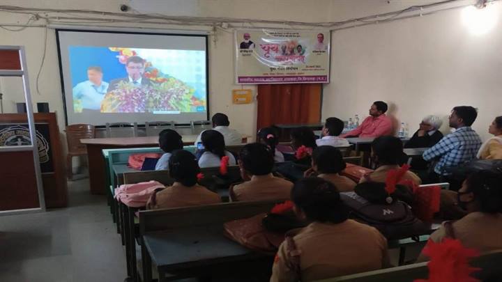 मुख्यमंत्री श्री शिवराज सिंह चौहान के मुख्य आतिथ्य में गुरूवार को मोतीलाल नेहरू स्टेडियम भोपाल में यूथ महापंचायत का आयोजन किया गया । इस कार्यक्रम का वर्चुअल प्रसारण जिले के सभी महाविद्यालयों के साथ ही शासकीय स्नातक महाविद्यालय अमरवाडा में भी देखा व सुना गया । इस कार्यक्रम के प्रसारण के लिए महाविद्यालय के हॉल ए में प्रोजेक्टर स्क्रीन के माध्यम से व्यवस्था की गई थी जिसमें विद्यार्थियों, एनसीसी कैडेट्स, यंग अचीवर्स व यंग वॉलिंटियर्स सहित 188 युवा प्रतिभागियों के साथ महाविद्यालय के प्राचार्य डॉ शिवचरण मेश्राम एवं जनभागीदारी अध्यक्ष श्री प्रदीप साहू, सदस्य एवं सभी शैक्षणिक, अशैक्षणिक स्टाफ सहित 259 लोगों ने उपस्थित रहकर वर्चुअल प्रसारण को देखा और सुना । इस अवसर पर महाविद्यालय के अचीवर्स को मोटिवेट भी किया गया