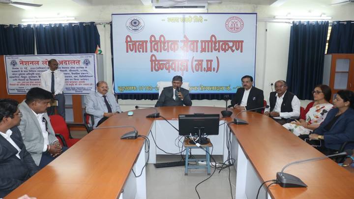 म.प्र.राज्य विधिक सेवा प्राधिकरण जबलपुर के निर्देशानुसार परस्पर समझौते के आधार पर आम जन को त्वरित एवं सुलभ न्याय दिये जाने के उद्देश्य से प्रधान जिला एवं सत्र न्यायाधीश/अध्यक्ष, जिला विधिक सेवा प्राधिकरण श्री जितेन्द्र कुमार शर्मा के कुशल नेतृत्व में आज जिला न्यायालय छिंदवाड़ा और तहसील न्यायालय परासिया, चौरई, पांढुर्णा, सौंसर, जुन्नारदेव, अमरवाड़ा, हर्रई व तामिया में नेशनल लोक अदालत संपन्न हुई। प्रधान जिला एवं सत्र न्यायाधीश/अध्यक्ष जिला विधिक सेवा प्राधिकरण श्री शर्मा ने जिला न्यायालय परिसर स्थित ए.डी.आर.भवन में महात्मा गांधी के चित्र पर माल्यार्पण और दीप प्रज्जवलित कर नेशनल लोक अदालत का शुभारंभ किया । शुभारंभ कार्यक्रम में प्रधान न्यायाधीश कुटुंब न्यायालय श्री चंद्रदेव शर्मा, विशेष न्यायाधीश श्री संजय कस्तवार, जिला न्यायाधीश श्री एच.पी.बंशकार, श्रीमती कुमुदिनी पटेल, श्री वरूण पुनासे व श्री पवन कुमार पटेल, जिला न्यायाधीश/सचिव जिला विधिक सेवा प्राधिकरण श्रीमती सविता ओगले, मुख्य न्यायिक दंडाधिकारी श्री शिवमोहर सिंह और जिला रजिस्ट्रार श्री मेहताब सिंह बघेल सहित जिला न्यायालय के समस्त न्यायाधीशगण, अध्यक्ष जिला अधिवक्ता संघ श्री सत्येन्द्र वर्मा, सचिव श्री वीरेन्द्र पाण्डेय, उप संचालक अभियोजन श्री गोपाल हलदार, एम.पी.ई.बी.के कार्यपालन अभियंता श्री खुशियाल शिववंशी, जिला विधिक सहायता अधिकारी श्री विजय कुमार खोब्रागड़े, अधिवक्तागण, न्यायालयीन कर्मचारीगण एवं जिला विधिक सेवा प्राधिकरण के कर्मचारीगण व पैरालीगल वालिंटियर्स उपस्थित थे।