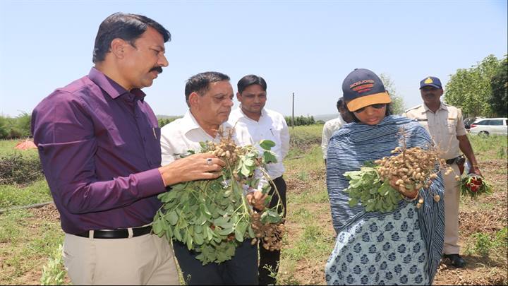 इसी क्रम में कलेक्टर श्रीमती पटले द्वारा ग्राम जोबनी के कृषकों के खेत में पहुँचकर ग्रीष्मकालीन मूंगफली फसल का निरीक्षण किया गया और किसानों से चर्चा की गई। चर्चा के दौरान किसानों को और अधिक उन्नत तरीके से खेती करने एवं प्राकृतिक खेती को बढ़ावा देने की बात कही गई। साथ ही किसानों द्वारा किये गये नवाचार खेती के साथ कृषि वानिकी के अंतर्गत सागौन के पौधे लगाने की सराहना भी की गई जो किसानों के लिए खेती के साथ अतिरिक्त आय का जरिया होगा।
