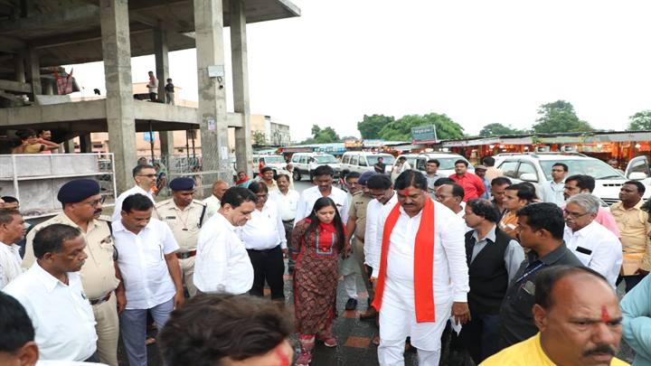 प्रभारी मंत्री श्री पटेल ने हनुमान मंदिर में पूजा अर्चना भी की