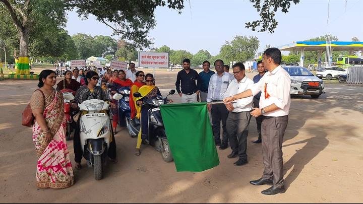 विधानसभा निर्वाचन 2023 को दृष्टिगत रखते हुये "मतदाता जागरुकता अभियान" के अंतर्गत कलेक्टर एवं जिला निर्वाचन अधिकारी श्री मनोज पुष्प के मार्गदर्शन में मतदाताओं, कॉलेज व स्कूल के छात्र-छात्राओं, शिक्षक, शिक्षिकाओं की मोटर साइकिल और स्कूटर रैली आज आयोजित की गई। इस रैली को स्वीप के नोडल अधिकारी एवं मुख्य कार्यपालन अधिकारी जिला पंचायत श्री पार्थ जैसवाल द्वारा पुलिस ग्राउंड छिंदवाड़ा से हरी झंडी दिखाकर रवाना किया गया। यह वाहन रैली स्थानीय पुलिस ग्राउंड से प्रारंभ होकर फव्वारा चौक, ईएलसी चौक से होते हुये कलेक्ट्रेट के पीछे से सत्कार तिराहा होते हुये वापस पुलिस ग्राउंड पहुंची। रैली में मतदाताओं, युवाओं, शिक्षक, शिक्षिकाओं द्वारा उत्साहपूर्वक भाग लिया गया एवं मतदाताओं को मतदान का महत्व बताते हुये मतदान करने के लिये प्रेरित किया गया ।
